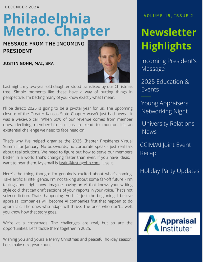 On Wednesday, September 26, members of Region VI welcomed area college and university students to a career connection event at the Pyramid Club. The purpose of the event was to connect college students with employers who were looking to employ interns and trainees in the next year. The room was filled with great conversations as seasoned appraisers and trainees alike spoke with the next generation of real estate professionals, giving them a realistic view of careers in appraisal. Though these students may not all go on to work as appraisers, they likely will be purveyors of appraisal reports. This event went a long way towards educating future appraisal consumers the value of working with Appraisal Institute members!